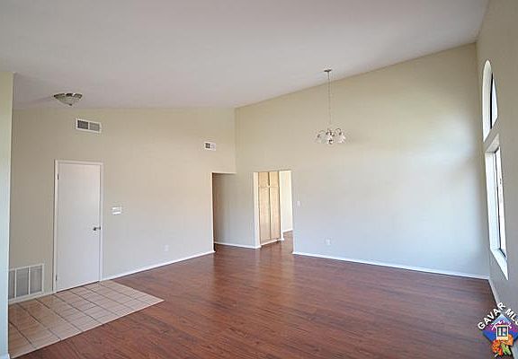 Beautiful house with a nice curb appeal and desert landscaping in the front yard. It starts with full interior 2 tone paint in very clean condition. High vaulted ceilings and large windows for extra sunlight. The exterior trim and eves have also been fully repainted. Beautiful cherry flooring through many different parts of the property. Large open kitchen with lots of cabinet space for extra storage. White tile countertops with appliances plus a large breakfast bar area. The spacious master has a double vanity plus and abundance of cabinet space. Electric metal roll up garage door with a 2 car garage. Property is close to schools, big stores, restaurants, city parks, public transportation, Dry Town Water Park and minutes from the freeway. WILL GO QUICK!