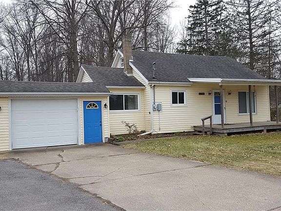 Clean, vinyl sided cape home with covered front porch on almost an acre, wooded lot behind. Eat in kitchen, separate dining room, first floor laundry. Master bedroom on second floor. Bedrooms down have hardwood floors. Bathroom remodeled and vinyl windows. Large one car garage with newer door and opener. Lots of potential here, with additional parking for camper, boat. Must see to appreciate.