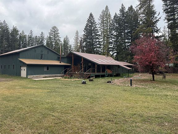 First time on the market and adjacent to State of Montana lands with the Lolo National Forest beyond. No HOA or CCR's so you are in control of the limitless potential for use, either residential, commercial, or both. The owner is a true craftsman and artist, and you will see special touches, including stained glass windows and accents throughout the home. A covered breezeway takes you from the garage and shop into the home, so inclement weather will not be an issue. Step up into the great room where your eyes will be drawn to the brick accent wall and tile flooring. The owner included a built-in hot tub in this room, as well as a 3/4 bath for convenience. Beyond the great room is the kitchen with oak flooring. In addition to the traditional range, you'll find a Majestic wood cook stove. The main floor has a large bedroom with direct access to the 3-season sunroom. There is a small office and bonus room adjacent to the living room, where you'll find the stairway taking you to the two cozy bedrooms upstairs. You'll enjoy your time outside with the extensive covered porch, perfect for large gatherings or just making it your own special place. There are redundant heat sources in both the home and shop, so you get to choose how you'll heat the home during the colder months. The level park-like yard will provide limitless enjoyment, and you can go exploring on the public lands east of the property line.