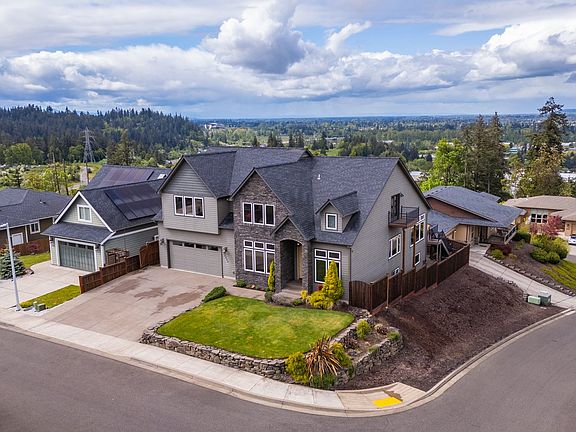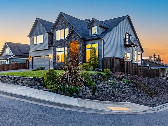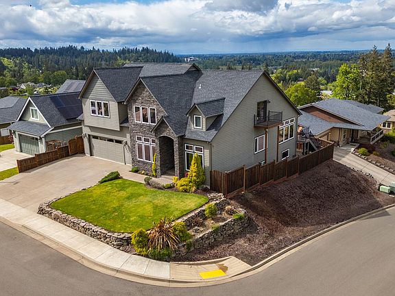 This extraordinary custom-built home boasts 5 bedrooms, 4.5 baths, and 2 offices and is perfectly suited for multi-generational families or professionals requiring dedicated home office space. Situated just minutes from the University of Oregon, Lane Community College, Autzen Stadium, Hayward Field, and other key amenities, this property combines luxury with convenience. The main level unveils a captivating great room, flowing into a spacious dining area and gourmet kitchen, formal dining room, and office adorned with French doors. The gourmet kitchen features an expansive island, pantry cabinets with pull-outs, stainless steel appliances including a 6-burner gas stove, all complemented by elegant oak floors. Retreat to the main floor primary suite for a serene escape, complete with soaking tub and a spa-like bathroom. Vaulted ceilings, mesmerizing views, and a striking stone wall gas fireplace enhance the allure of the great room. Upstairs, discover three bedrooms, two bathrooms, a cozy bonus room, and another larger bonus room complete with a wet bar, balcony, and vaulted ceiling. One of the bedrooms in this wing enjoys the luxury of its own full bathroom. Quality craftsmanship and thoughtful design extend throughout the upper levels, seamlessly transitioning to the lower level which offers versatile living options including a second kitchen (stove ready), laundry facilities, a welcoming family room, and access to the covered patio, hot tub, and fire pit. This space could be utilized as a guest suite or a home gym/hobby area. Outside, the low-maintenance yard provides the ideal backdrop for relaxation, while an oversized two-car garage ensures ample space for vehicles and storage needs. Additional features of this home include two high-efficiency Carrier gas furnaces, two air conditioning units, a tankless water heater, instant hot water faucets in the kitchens, two sets of washers/dryers, and a central vacuum system. Call your broker today for a private tour!