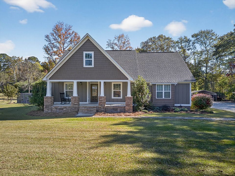 NEW LISTING! First time on the market, homebuilders/real estate brokers custom built personal home. This custom craftsman 1&1/2 story home features an open living/dining/breakfast/kitchen area perfect for entertaining. Covered front and back porches are perfect for enjoying the outdoors. No expense was spared in this gorgeous home including custom shaker kitchen cabinets that are full height, soft close and have pull out drawers with granite tops. Deep stainless sink, gas cooking, pull out garbage drawer, built in microwave niche and tile backsplash are also present. There is a large walk in panty and nearby spacious laundry/mudroom. On the first level you will find a half bath for guests and 2 primary bedrooms both with walk in closets and soaking tubs. The hardwood and tile floors make is perfect for kids and pets. Upstairs there are 2 extra bedrooms with a large hall bathroom with double sinks. Outside there are 3 additional patios perfect for entertaining. The 1.83 acres is almost all private with some fenced level yard for kids and pets, more cleared and some wooded with a small stream flowing through. A 2 car detached, insulated, garage covered with a breezeway has additional room with built in shelving, 12' ceilings, a 30 or 50 amp plug for a camper or welder, and bonus storage room above. Important features to note on this custom home is a gas tankless water heater, spray foam insulation, cement board and batten siding, vinyl shake eaves, recessed lighting, stacked stone foundation, and underground utilities making this the perfect forever home close to everything but private.