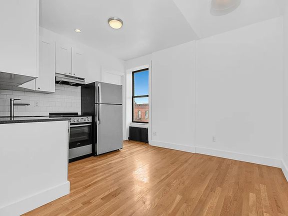 Bright one-bedroom with western exposure, stainless steel appliances, and great natural light. Features a small living room, open kitchen, two closets, and hardwood floors throughout. Washer/dryer in unit.