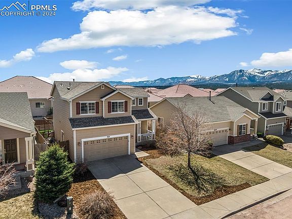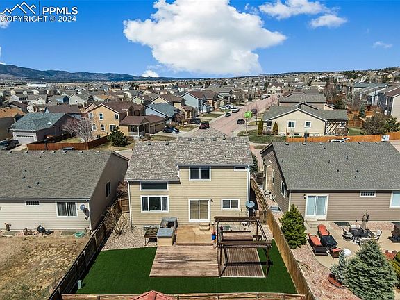 This beautifully appointed home is located in the highly sought after Falcon View Community. The allure of this home begins with the cozy front porch and continues into the main living area which boasts an abundance of natural light and mountain views. Enjoy the relaxing color scheme of the freshly painted interior. The open concept floor plan allows for easy entertaining and the ability to stay connected. The sun-filled living room offers a comfortable seating area. The spacious updated kitchen features a pantry, new countertops and a new gas range/oven. The powder bathroom and mudroom with storage complete the main level. The upper level begins with a beautiful and functional built-in desk area and continues on to the primary bedroom which features an updated bathroom with large soaking tub, new countertops and a spacious walk-in closet. Two additional bedrooms (one with new Wainscot Paneling) and a full bathroom complete the upper level. The lower level is perfect for family movie night and/or gaming and your guests will appreciate the private bedroom and bathroom. The professionally designed backyard is perfect for entertaining. The patio extends to the deck area which provides ample space for family and friends. Enjoy the mountain views and environmentally friendly artificial turf which requires no watering or mowing, all while providing a beautiful green lawn year around. Additional features of this home include: Award winning Academy School District 20 Schools, air conditioning and a radon mitigation system. This beautiful home is located near I25, the Air Force Academy, shopping, schools, parks, trails and the Polaris Pointe entertainment center which features Top Golf, Indoor Go-Karts, Trampoline Park, Indoor Sky Diving, Bass Pro, Boot Barn Hall and the upcoming state of the art Sunset Amphitheater. This property will go quickly, so schedule your showing today!