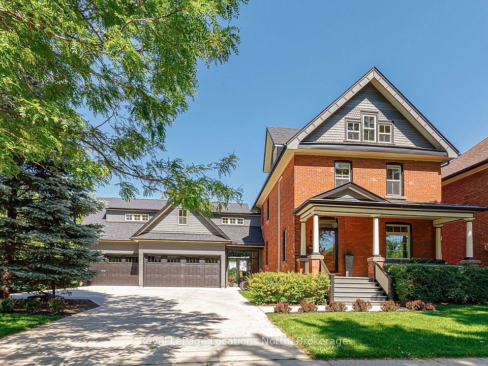 Welcome to this stunning red brick home in downtown Collingwood, seamlessly blending classic charm with contemporary elegance. Set on a private, mature treed lot, the property boasts a gorgeous backyard oasis perfect for relaxation and entertaining. The backyard features an 18x36 inground saltwater pool, hot tub, sauna, pool bar, and a spacious patio, ideal for leisure and entertainment. Inside, the spacious chefs kitchen is equipped with luxury stainless steel appliances, a pantry, and ample cupboard space, making it a culinary dream come true. The inviting living room, with its cozy gas fireplace, offers a warm and welcoming space. Convenience and efficiency are ensured with the main floor laundry. The primary bedroom provides a private retreat with a luxurious ensuite bathroom, while two additional bedrooms offer ample space for family or guests. The modern loft addition includes in-law capability with a family room featuring a gas fireplace, an office area, a bathroom and a bedroom, perfect for accommodating family and friends. There's potential to finish the attic, adding even more living space. Additional features include a concrete driveway, a triple car garage with one bay set up as a gym and a fenced yard ensuring privacy and security. Located just steps from downtown Collingwood, this home is within walking distance to schools, shopping, dining and all the amenities the heart of downtown has to offer. This stunning red brick home combines modern touches with timeless elegance, offering a perfect blend of luxury and comfort in a prime downtown Collingwood location. Don't miss the chance to make this beautiful property your new home.