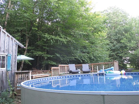 MOVE IN READY!! This home sits nicely back from the road with just under 5 ACRES with a 2 CAR ATTACHED GARAGE, above ground pool and DECK. Inside you will find stylish features with an open floor plan. The spacious kitchen has KITCHEN ISLAND with bar stools and STAINLESS APPLIANCES. The dining room is off the kitchen with access to the deck and open to the living room with some nice natural light. Bedrooms are nice sized with a large bathroom. The huge FAMILY ROOM is in the basement with fireplace, laundry, 2nd bathroom and entrance to the back yard. Outside there is a nice size yard with fire pit, pool house, shed, PAVED DRIVEWAY and 2 1/2+ wooded acres.