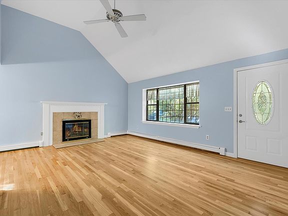 Cozy fireplaceVaulted ceilingBright white kitchenPrivate yardFull basementDining areaDirect garage access