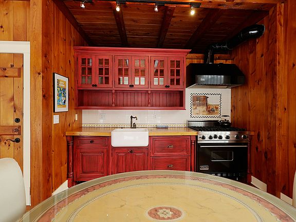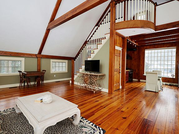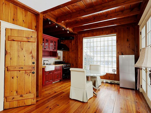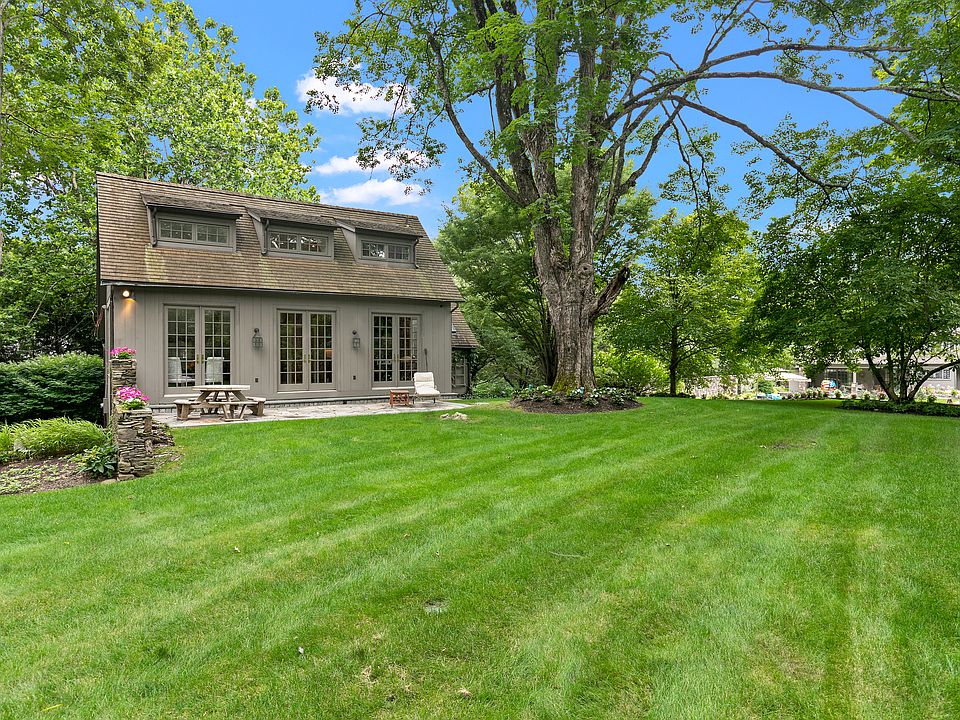 Quintessential country cottage on the grounds of the iconic "Moongate" with pond views. The private gated entry leads to this light filled, barn style, post and beam cottage with stone patio and enchanting grounds. Total 922 sf of sundrenched living space with massive floor to ceiling windows and walls of French doors to the private patio overlooking the gardens and pond. Furnishings in the photos are included if desired. The main level features a vaulted great room with upscale kitchen featuring Viking gas range, dishwasher, plus refrigerator and refrigerated drawers. The sunny kitchen offers an ample dining area with vintage table included, and is open to the soaring family room with cathedral ceiling and two story windows, plus charming wide board floors throughout. The first floor also includes the generous walk-in-closet/dressing room and luxe bath with custom tiled shower, double hammered brass basin sinks, plus wall mounted fixtures. Ascend the lovely staircase to the loft style bedroom offering vaulted ceiling, knotty pine paneled walls, and picturesque views. This chic apartment can be accessed from the lower garage where there is a laundry hook up, or from the main level patio entrance. The price includes electric, trash service, mowing/plowing, and grounds maintenance. Available for immediate occupancy. Six month term or longer preferred, but landlord is flexible. Pets will be considered on a case by case basis. Idyllic lifestyle awaits at The Cottage at Moongate.