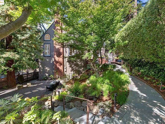 Discover rare privacy at 369 Hampton Ave, where an elegant Cape Cod cottage marries modern treehouse design, tucked away in coveted Piedmont. This airy retreat welcomes you with soaring ceilings, exposed beams, and playful geometric railings, a design feat once featured in Sunset magazine. Refinished hardwood floors add warmth to the main level and stunning original windows connect with verdant views and bathe the rooms in natural light. The updated kitchen with new backsplash, countertops, and 36" gas cooktop opens to a deck—ideal for morning coffee or sunset gatherings amid rare open space.. The living room's dramatic ceiling height creates expansiveness, while the adjacent family room offers cozy comfort and potential for a third bedroom. Upstairs, a large loft overlooks the living space, perfect as a library, home office, or playroom. The primary suite feels like a peaceful sanctuary with treetop views. Step outside to a Zen garden with built-in metal planters, wood benches, a sculptural water feature, and fire table—a magical setting for meditation or garden parties. The basement bonus rooms offer untapped potential. Just 2 blocks to Hampton Sports Field and minutes to top schools and the Montclair Village, this 1924 gem balances unique character with modern comfort.