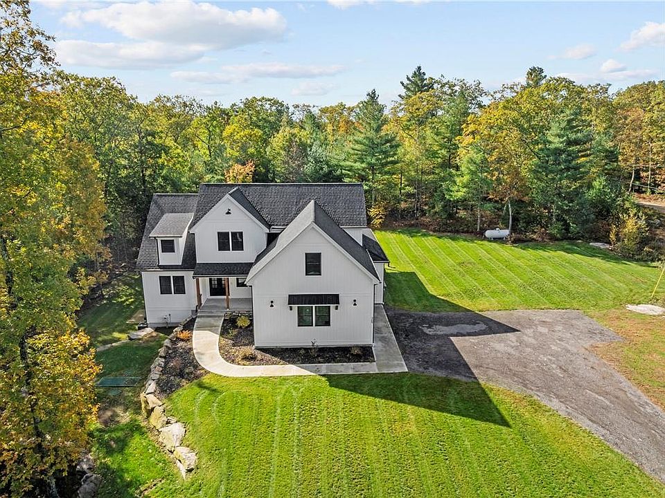 Discover a stunning 2,686-sq.-ft. custom farmhouse in rural Glocester which sits on a pristine 6.87-acre lot where nature abounds. Offering 3 bedrooms, 2.5 baths, and an expansive wrap-around back porch to view the grounds. Step from the cozy, covered front porch into the foyer. A first-floor primary suite has private access to the rear covered porch, an ensuite bath, and a walk-in closet for luxurious living. Follow the wide-plank pine hardwood floors into the welcoming great room with its impressive fireplace casting light across to the stylish kitchen. Crisp white cabinets, granite countertops, and a center island make this hub of daily life equally stylish and functional. The well-appointed mudroom connects to the attached 2-car garage. All modern amenities, an open layout, and an engaging integration with the outdoors creates the ideal country life. Tranquil and private, your beautiful home will be a short drive to Smithfield Crossings, only 10 minutes from Rt. 6 in Scituate, less than 10 minutes to the center of Chepachet Village for dining, shopping, and antiques. Residents enjoy an active lifestyle of golf, friendly parks, and nature preserves. Explore and rejuvenate at the Pascoag Pedestrian Path and Harrisville Waterfall. For a jolt of vibrant city life, take Rt. 44 to the fine dining and theater of Providence.