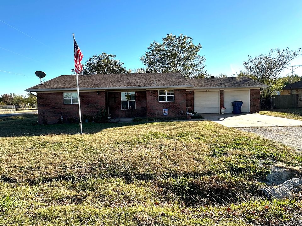This 3 bed 2 bath brick home set on a corner lot at the edge of town needs a little tlc and will be ready for its new owner. There are 2 sheds in the backyard only one stays (the one with the front porch does not). There is a 2 car garage great for hobbies, she shed, man cave or remodel to your liking. Fenced in back yard ready for the family pet. All kitchen cabinet doors have been removed but sellers have them. Home is priced undervalue do to the slab work that needs to be done, and it needs a new roof no leaks that the seller has seen. Its just damage from recent storms.