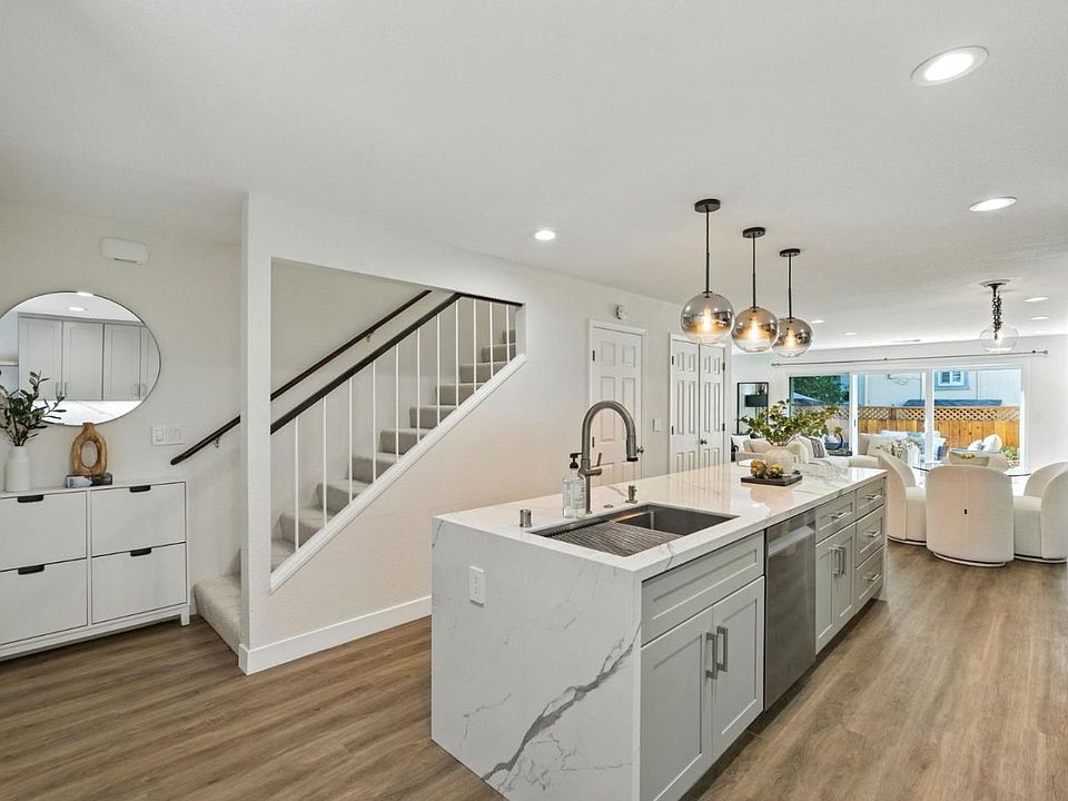 Tired of trade-offs? This townhome gives you everything: style, space, parking, and the private outdoor retreat you've been hoping for. Just steps from downtown, this remodeled home delivers. The open concept kitchen features a large island and abundant storage, perfect for cooking, gathering, and entertaining. Indoor-outdoor living comes easy with a patio, deck, and garden space. Upstairs, two bedrooms each offer en suite baths and generous closets, including a super spacious primary suite. Extras include side-by-side laundry, two parking spaces (garage + carport), and a welcoming four-home community with low monthly fees.