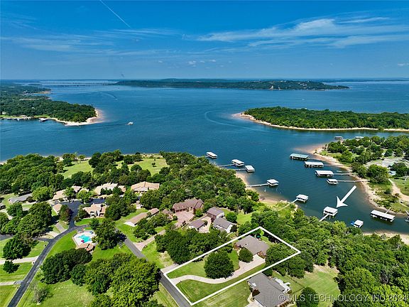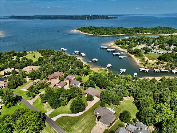 WATERFRONT CUSTOM HOME IN GATE SPINNAKER POINT WITH PRIVATE 2 STALL BOAT DOCK! This beautiful 4 bedroom custom home is situated on an acre (MOL) of land in the gated community of Spinnaker Point. It is professionally landscaped, has a sprinkler system, and a large beautiful composite deck on the lake side for you to enjoy the wildlife, lake, and sunsets. It is a gentle slope to the water's edge to step on your private two stall dock with a hydrohoist lift. It also comes with 2 drive on personal water craft lifts. Inside the home you will discover each room beautifully decorate with custom window treatments and other features. There is also a study, 3.5 bathrooms and a large bonus room above the garage that is heated and cooled. This is a great waterfront package waiting for you! Owners are Licensed Oklahoma REALTORS.