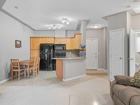 Move-in readyOpen floor planBright dining spaceFunctional kitchenMaple cabinetryBlack appliancesOver-the-range microwave