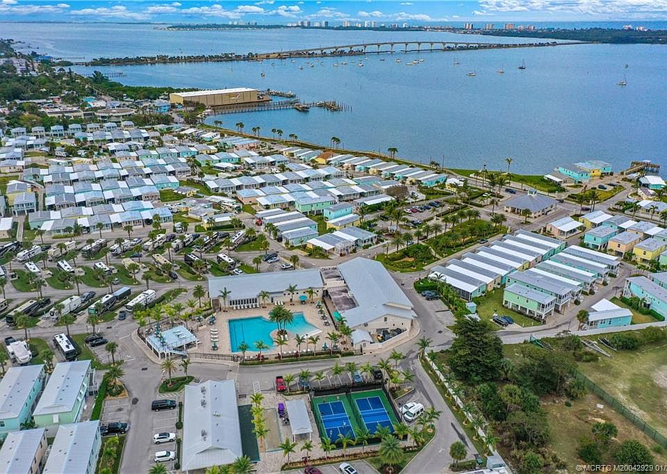 Welcome to Ocean Breeze Resort, a 55 and older community located in downtown Jensen Beach. This newly constructed home, built in 2021, features 2 bedrooms, 2 baths, and parking for 4 cars. Enjoy multiple decks for entertaining or relaxing and the option to enclose the downstairs area for additional living space. The resort offers a range of amenities, including a heated pool with a spa-jacuzzi, poolside cafe, game room, fitness center, sauna, steam room, pickleball courts, and a fishing pier with paddleboard and kayak launch on the Intercoastal waterway/Indian River Lagoon. With the Atlantic Ocean and beautiful beaches just minutes away, and downtown Jensen Beach with its Key West-inspired shops, restaurants, and live entertainment within walking distance, there is plenty to explore and enjoy in this vibrant community.