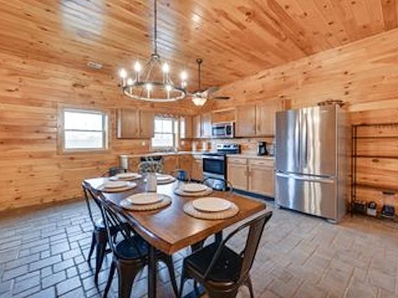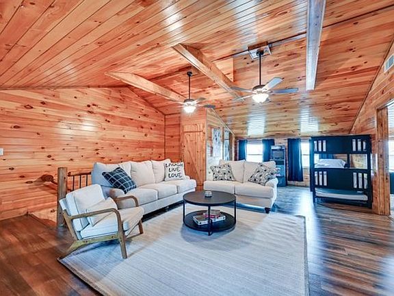 This fully furnished Airbnb is nestled within an established Nolin Lake community, and hosts breathtaking lake views, in addition to NO HOA, or rental restrictions. This property is a rare find, attention to details have been paid to every aspect of this "cozy cabin" complete with wood planked floors and walls, a fireplace, TWO living rooms, and an attached side porch, with a hot tub. The outdoor pavilion, complete with electric and water connections, a bar and bon fire pit, makes this the ideal place to relax or host outdoor activities; while the fenced in yard will keep your pets safe and close by. Contact listing agent today for your private showing. One or more photo(s) was virtually staged.