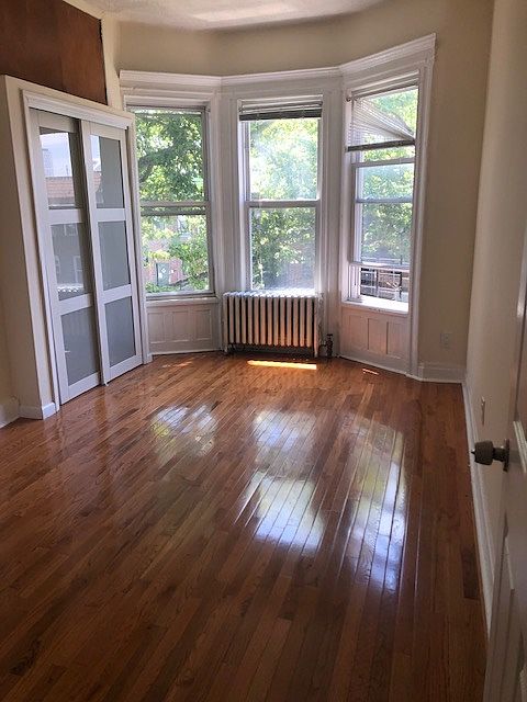 very spacious and bright 2 bedroom. windows on three sides. second floor of two story 4 family building. quiet, clean and neighborly. this is a 5 room railroad apartment. large living room plus large master bedroom with two giant closets. there are two other windowed rooms in the center. big enough for full sized beds in each. excellent space and light. wood floors throughout. the rear corner kitchen has room for a table and two window exposures. bright, newly tiled bathroom with window. no pets preferred. cat is ok. convince me your 19 pound dog sleeps all day and never barks. there is no outdoor space or laundry in the building. there is laundry around the corner. easy walk to subway and the best of prospect lefferts gardens , prospect park and wingate park please see the video. i am doing in person showings as well as virtual. heat and hot water IS INCLUDED. there is no fee. tenant pays gas and electric. there is no fee. july 1 or july 15 is ideal. will consider august 1.