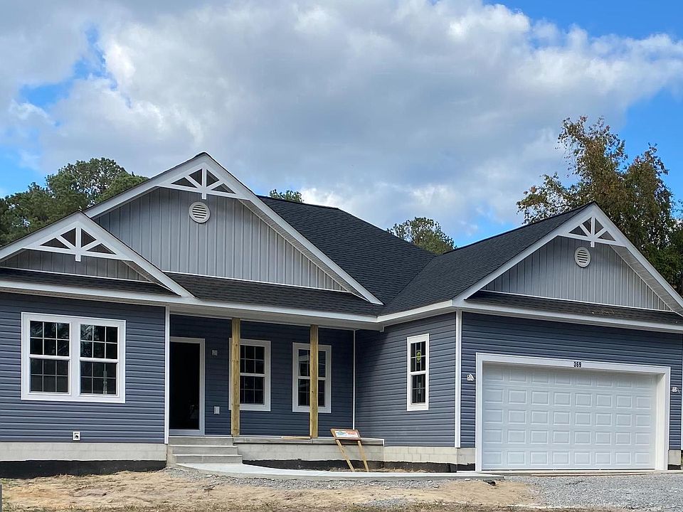 AMAZING LOCATION!!! This new construction is close to finished and ready for its new owner! Close by Dahlgren, Bowling Green and just under an hour from Fredericksburg. The home is located in a water oriented community with beach access nearby as well as boating access. Featuring granite countertops, tiles in both full bathrooms, stainless steel appliances, vinyl floor tiles and multiple ceiling fans, with an attached exit to a rear covered rear porch. Attached two car garage with inside & outside entry access. Move in ready!