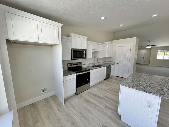 Model: The ELY GBE Status - Complete. Builder has selected colors. Estimated Close of Escrow date is 8/9/24. Standard features: Granite countertops, soft close cabinets and drawers, luxury vinyl plank flooring in the entry way, living room, dining room, kitchen, laundry, and baths. Vaulted ceiling, central air, all stainless-steel appliances including: microwave, dishwasher, electric smooth top range, 3' X 5' Kitchen island. Standard features may have changed, some features may no longer be considered standard. Please note refrigerator is no longer included. Builder to pay $10,000 toward buyers closing costs. Up to $1,000 to be paid in closing costs by preferred lender. Photos are for illustration purposes only.