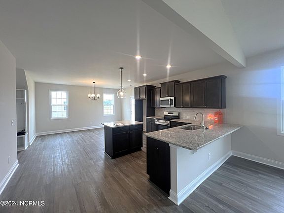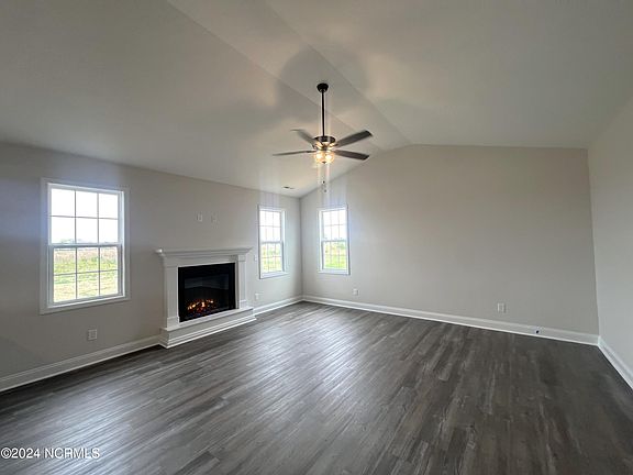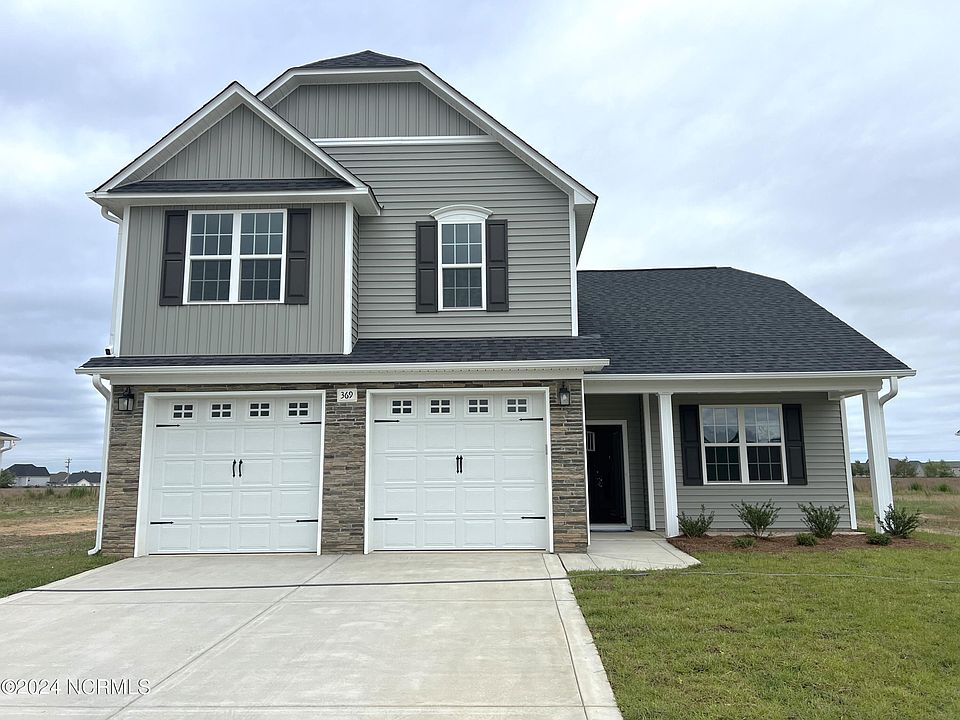 Front Porch leads into foyer with guest bedroom/walk-in closet and access to full guest bath! Great room with electric fireplace. Kitchen/Dining Combo with granite counters, walk-in pantry, and access to back covered porch/ All other bedrooms upstairs! Owners Suite with trey ceiling, walk-in closet, soaking tub, walk-in shower. 2 other bedrooms, full bath, laundry and linen closet complete the upstairs floor.