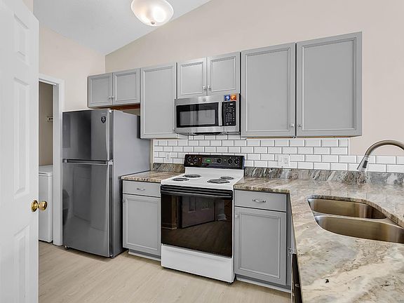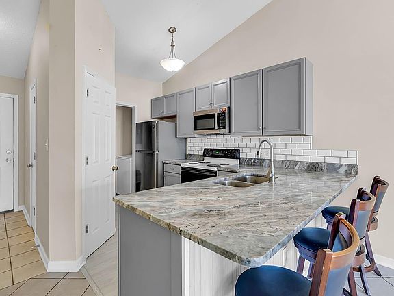 Freshly revamped 2-bedroom, 2-bathroom condo alert! Feast your eyes on the stunning cathedral ceilings and a kitchen makeover with new floors, snazzy fridge, microwave, dishwasher, marble countertops, and shiny new cabinets. Both bathrooms got a glam upgrade with new vanities, floors, toilets, and a sparkling new shower in the primary bath. Plus, there's a washer and dryer included! Savor the serene pond fountain views from the spacious balcony, and dive into relaxation at the community pool on those sizzling summer days!