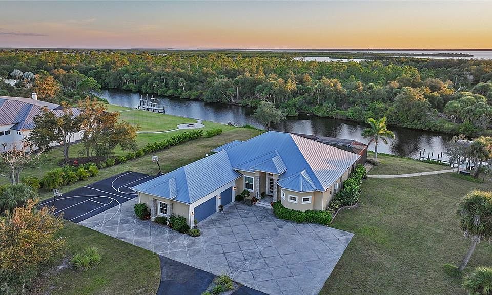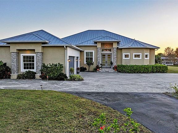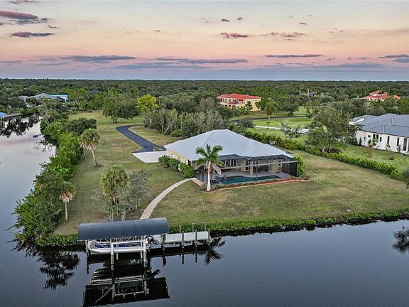 Experience a lifestyle of unmatched luxury and serenity at 3690 Como Street—an extraordinary waterfront residence set within one of Port Charlotte’s most exclusive and private neighborhoods. Built in 2017, this custom-designed estate masterfully blends modern sophistication with timeless Florida charm, offering an exceptional balance of comfort, style, and functionality. Situated on an expansive corner lot boasting over 600 linear feet of pristine waterfront, this home captures breathtaking views from every angle. Step inside and be welcomed by a seamless open floor plan adorned with designer finishes, elegant crown molding, and an abundance of natural light. Every detail has been carefully considered—from the meticulously curated décor to the flawless craftsmanship that defines each space. The heart of the home is the chef’s kitchen—an entertainer’s dream—featuring a gas stove, premium stainless-steel appliances, custom cabinetry, and sleek stone countertops. The open concept flows effortlessly into a spacious great room centered around a gas fireplace, creating a warm, inviting atmosphere perfect for intimate gatherings or lavish entertaining. Beyond the living areas, the primary suite offers a private retreat with tranquil water views, spa-inspired bath that includes an additional stacked washer and dryer for optimal convenience, and direct access to the outdoor living space. Every additional bedroom and bath echoes the same commitment to quality and refinement found throughout the home. Step outside to a resort-style oasis designed for the ultimate coastal lifestyle. A sweeping screened lanai overlooks the shimmering canal, offering multiple lounge areas, a summer kitchen, and space to dine al fresco while taking in the peaceful waterfront scenery. Boating enthusiasts will appreciate the 12,000-lb boat lift, providing effortless access to Charlotte Harbor and the Gulf of Mexico—just a leisurely 30-minute coast to open water. This property is not just a home; it’s a statement of refined living. Enjoy the security and tranquility of an exclusive neighborhood while remaining close to the area’s best beaches, golf courses, fine dining, and boutique shopping. Modern amenities like a tankless gas water heater, impact-rated windows, and premium finishes throughout ensure that luxury and practicality coexist in perfect harmony. Every inch of 3690 Como Street has been beautifully designed, decorated, and built to impress even the most discerning buyer. This is more than a residence—it’s a coastal sanctuary where craftsmanship meets comfort and everyday living feels like a vacation. Schedule your private showing today and experience the elegance, privacy, and prestige that make this exceptional waterfront home truly one of a kind.