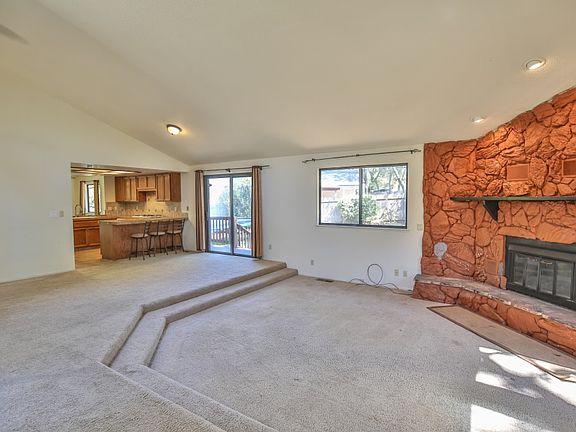 Enjoy this contemporary single story home with vaulted ceilings, step down living room, fireplace and wood stove. 3 bedrooms, 2 baths, eat in kitchen features breakfast bar and granite counters. Enjoy dinners on the deck and the large treed backyard is a perfect place to enjoy an outdoor BBQ and entertain family and friends. Inside laundry room with sink . Large garage with work area. Easy access to Hwy 50