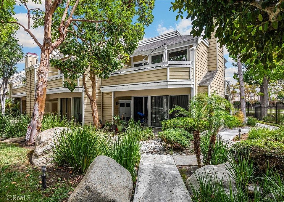 Fully renovated dual-primary bedroom condo in South Coast Springs with over $100,000 in upgrades. This two-bedroom, two-bathroom unit features dual ensuite bedrooms, ideal for privacy and flexibility. The entire interior has been gutted and rebuilt with premium finishes throughout. Highlights include a custom-built laundry closet relocated from the patio to the primary bedroom, accommodating a full-size stackable washer and dryer. The patio laundry closet is still intact if you want to move it back to side-by-side appliances. Designer shaker closet doors with mirrored panels and professionally organized interiors enhance both bedrooms. Custom tile work and quartz countertops elevate the kitchen and bathrooms, with one ensuite offering a shower and tub combination. Consistent laminate flooring in neutral gray tones flows throughout the home, complemented by plantation shutters and a dramatic stone-covered fireplace that extends to the ceiling. Located on the second floor, the unit enjoys high ceilings throughout—an architectural feature that adds volume and light, and is often a favorite among buyers. Additional upgrades include a newer water heater and central air conditioning for year-round comfort. Smart home features include a Nest thermometer. Enjoy views of the beautifully landscaped common area, reminiscent of a mountain retreat, with mature trees, natural stone accents, and lush ground cover that create a peaceful, forest-like ambiance. This unit includes a one-car garage with epoxy flooring, finished drywall, fresh paint, and custom cabinetry for storage. There is still ample space to park a small SUV or medium-sized sedan. The South Coast Springs community offers two pools and a prime location near world-renowned South Coast Plaza, Segerstrom Center for the Arts, and South Coast Repertory. Residents also enjoy easy access to fine dining, boutique shopping, parks, and major freeways, making this community as convenient as it is desirable.