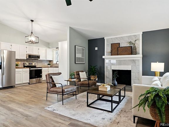 The open floor plan boasts a welcoming living room with a cozy wood-burning fireplace and a sleek ceiling fan. The kitchen opens to the living room and features stainless steel appliances, white cabinets, and stylish solid wood butcher block countertops. Located at the end of the hallway is the primary bedroom with it's own private primary bathroom. Also conveniently located on the main level are two good size bedrooms and another gorgeous bathroom. Entertain in the finished basement rec space, perfect for movie or game nights. Enjoy the flexible non-conforming bedroom, also a great place for an office. The expansive backyard provides privacy for summer gatherings and BBQs. Have piece of mind knowing your energy bills will be low with your super-efficient, fully-owned solar panels. Additionally, a brand new roof with Class 4 Impact Resistant Shingles has been installed. Perfectly located for easy access to Cherry Creek & Quincy reservoirs, nearby shopping & dining, and a quick commute to DTC or DIA, this home presents an incredible opportunity to make it your own!