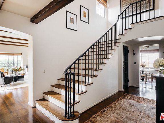 Charming Spanish tucked in the Los Feliz Hills. Indoor-outdoor lifestyle, flat grassy backyard, and stunning mountain views. Close to nature trails, LA Zoo, Griffith Observatory, and Los Feliz Village shopping. This 3-Story home offers 3BR plus an office, 4BA layout, hardwood floors, exposed wood beam ceilings, well-restored classic grid windows and beautiful arched doorways epitomizing 1930's craftsmanship. Lovingly curated with character, this home is a true private oasis! Both wonderful for entertaining and a warm inspiring space for a family, alike.