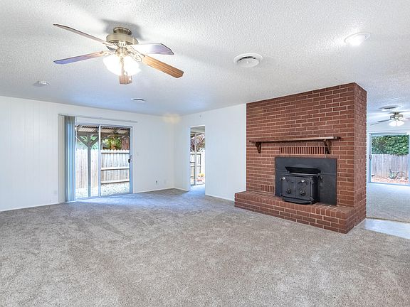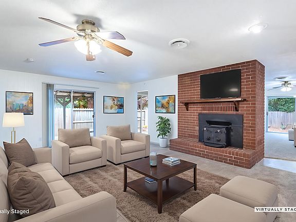 Move-in ready home with RV parking set on an expansive corner lot of over a quarter acre. This inviting residence offers exceptional comfort and versatility, featuring updated flooring and fresh paint throughout, along with two generous living rooms perfect for entertaining or creating separate activity spaces. A charming wood-burning stove adds warmth and character, serving as a cozy focal point for gatherings. The bright, open kitchen offers plenty of counter space and abundant storage, while the home's spacious layout provides excellent flow and natural light. Outside, the property continues to impress with a circular driveway, wide-open yard space, and mature trees that offer privacy and shade. Set on a desirable corner lot, this home offers space, comfort, and flexibility in a well-loved neighborhood—ideal for those seeking room to spread out and enjoy.