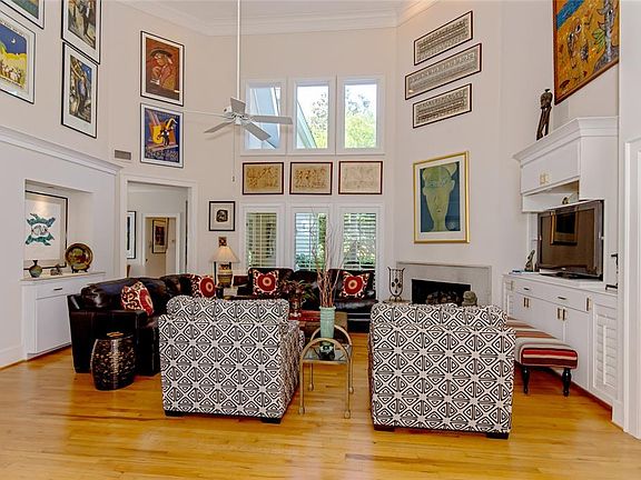 Generous spaces and a practical floor plan welcomes family and friends to this custom built, one owner home! The main level opens to living and dining areas, (living room offers 20 ft. ceilings), kitchen with adjacent sun filled breakfast room, and master suite. Upper level has 3 additional bedrooms, 2 bathrooms and great storage space. Other features include fireplace in living area, lots of closets, cabinets, plantation shutters throughout, great natural light and a very private, cozy patio area and backyard filled with crepe myrtles and magnolia trees. Purchaser to verify school zones and square footage.
