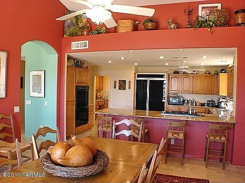 For more information on this property, contact the Listing Agent, Trudie and Lynn at (520) 918-7419 or TrudieWP@LongRealty.com . Absolutely stunning hm with unobstructed mtn views,sited high above the 21st & 27th holes of the Catalina Golf Course.Expanded kitchen has been completely remodeled & includes granite counters,maple cabinets,pull outs,double convection ovens,48 cubic foot flat paneled Kitchen Aid refrigerator,Dacor gas stove,oversized Franke SS sinks.Beautiful custom built-ins in dining room & wet bar.15'x13' office added to enlarged master bedroom with gorgeous custom built office furniture & book shelves.Extended cov'd flagstone patio w/3 burner Viking gas BBQ.Master bath completely remodeled with granite counters,built-in vanity,additional cabinets,tiled shower & pendant lighting.Expanded garage with golf cart bay,4 lg storage cabinets, service door & laundry tub.Enjoy the finest in SaddleBrooke living!
