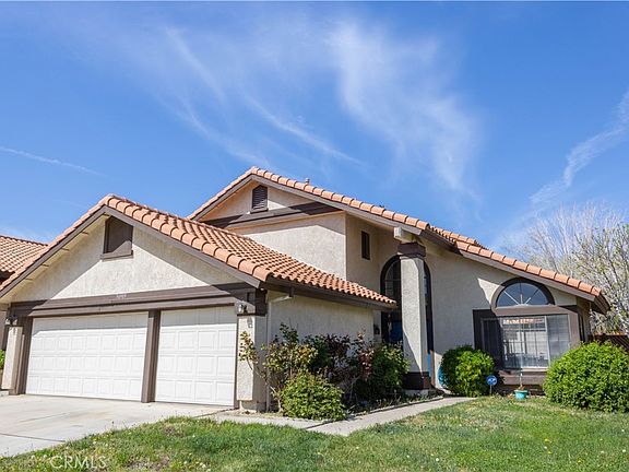This beautiful home is located in a great Palmdale neighborhood, and as soon as you lay your eyes on it you’ll immediately recognize the true “Pride-Of-Ownership.” Here are just a few of its many other fine features: Lush landscaping and colorful planters enhance its eye-catching curb appeal. You’ll step into a flowing 1,910 square foot open concept floor plan that is in “Move-In-Condition” with a complementary paint scheme, plus an aesthetic blend of laminate, tile, and carpet flooring. The spacious living room is bathed in natural light from a multitude of windows which highlights its soaring ceiling. The family’s cook is going to appreciate the kitchen’s abundant cabinets, ample tile counters, durable dual basin stainless steel sink, built-in stainless steel appliances, sit down breakfast alcove with bay window, and the convenience of the adjoining dining room. Since the family room with its direct patio access and mantled gas-burning fireplace flows seamlessly with the kitchen you’ll find it very easy to serve and entertain your guests simultaneously. A total of 4 bedrooms; 1 is located on the first level. The grand suite has a vaulted ceiling, a walk-in and secondary closet, plus a nicely appointed bathroom with mirrored dual sink vanity, soaking tub, and glass enclosed shower. 3 bathrooms; 1 is located on the first level for your guests. Functionally located laundry room. Newer central air and heating system for year-round comfort. You’re going to appreciate and enjoy the backyard’s tall privacy fencing, covered entertainer’s patio, and mature shade tree. Plenty of secure off street parking on the oversized concrete driveway and in the 3 car direct access garage. All of this sits on a large 6,238 square foot lot that is close to the 14 freeway, Lake Palmdale, and Pelona Vista Park with its 10 lighted soccer fields and 1 mile walking path.