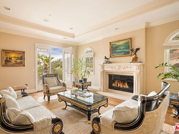 Tucked away within the prestigious enclave of "The Benedict Collection" at the southern tip of Sherman Oaks, this rare estate is one of only seven residences at the end of a tranquil cul-de-sac. Offering sweeping vistas of the San Fernando Valley and beyond, the home embodies timeless sophistication while celebrating the ease of indoor-outdoor California living. The light-filled living room, anchored by a stately fireplace, flows effortlessly to a serene outdoor terrace with captivating city, mountain and lush green views. An adjacent family room and dining room extend into the expansive kitchen and breakfast area, oriented toward the rear terrace and grassy yard ---complete with ample space for a pool. The primary suite features a fireplace and generous bathroom, and connects to a versatile secondary bedroom ideal as a private office, retreat or gym. The lower level is designed for both comfort and versatility, with four additional bedrooms, a spacious open lounge or play area, and a conveniently located laundry room. Direct access to the 4-car garage completes the thoughtful layout. Blending privacy, elegance and views in a beautiful setting, this exceptional residence offers an unrivaled opportunity to own one of Sherman Oaks' most coveted addresses.