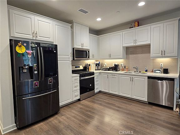 REDUCED PRICE! Welcome to 3691 E Moonlight St, Unit 74 a modern 2-bedroom, 2.5-bathroom condominium built in 2023, offering 1,375 sq. ft. of thoughtfully designed living space in the highly desirable New Haven community of Ontario Ranch. Step inside to an open-concept floor plan with high ceilings, large windows that provide the home with natural light, recessed lighting and sleek laminate flooring, creating a warm and inviting ambiance. The kitchen features stainless steel appliances, quartz countertops, a stylish tile backsplash, and white shaker cabinets. Upstairs, the primary suite includes a generous walk-in closet and an en-suite bathroom with dual sinks, quartz counters, and modern fixtures. The second bedroom is also an en-suite, perfect for guests or family, with ample closet space. The conveniently located laundry room is upstairs as well. Enjoy a private outdoor patio, perfect for morning coffee or evening relaxation. The home also comes equipped with solar panels, reducing energy costs while supporting sustainable living. The New Haven community offers resort-style amenities, including multiple gated swimming pools, BBQ areas, playgrounds, and scenic walking paths.