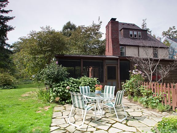 Charming Tudor with rare extra lot. Living Room with wood burning fireplace, natural woodwork and hardwood floors opens to formal Dining Room. Spacious Family Room with stone fireplace and newer windows leading to a fabulous screened outdoor porch w/built in grill. Updated eat-in Kitchen with cherry Kraftmade cabinets, granite counters & newer lighting (overhead and under mount) Flagstone patio in rear yard plus beautiful spacious extra lot plus a unique tree house! Updates include newer windows in second and third floor, newer boiler (2012) newer hot water tank (2009) converted gas FP in family room, newer fence, added insulation, water main replaced, fresh paint. Gorgeous hardwood floors on second floor plus third floor suite with bedroom, full bathroom and great storage. Gorgeous landscaping front, rear and side. This home has gorgeous curb appeal and is ready to just move in!