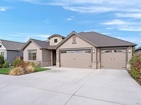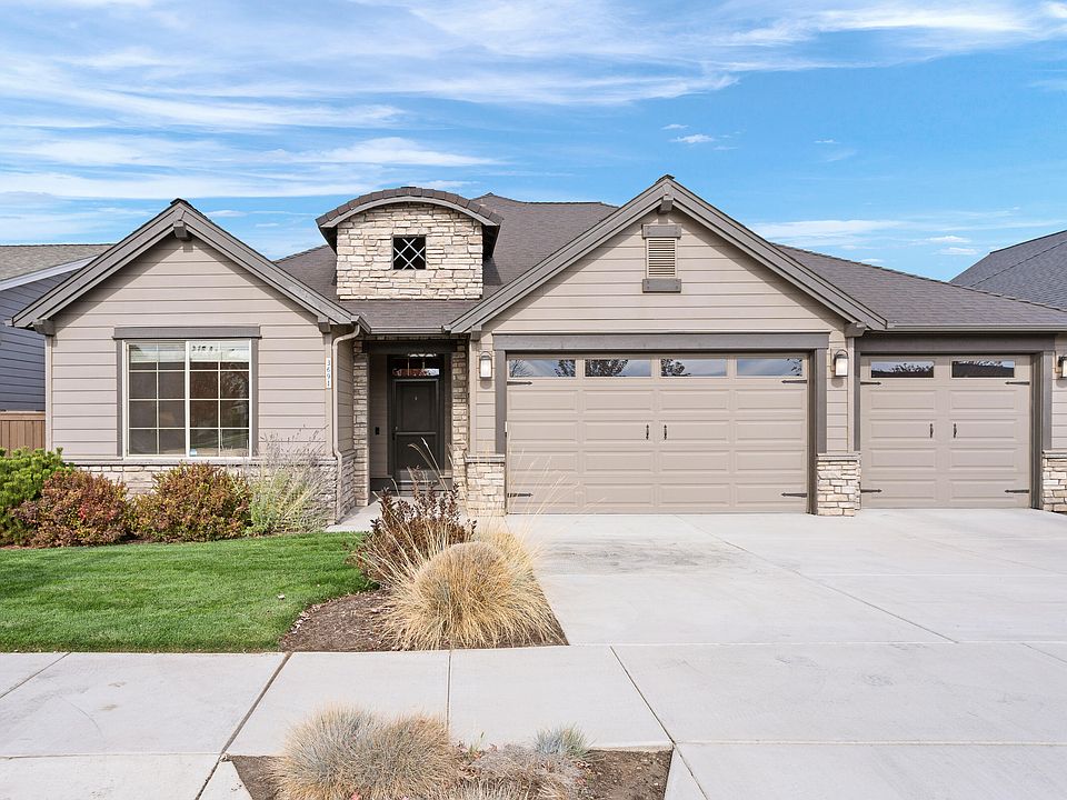 featuring a dream pantry, island with breakfast bar, stone counters, and newer stainless appliances, including a double oven. The primary suite is a true retreat, complete with a giant walk-in closet, dual sinks, and a beautifully tiled shower.There is also a junior primary suite, making this home perfect for guests, multi-generational living, or a home office. Step out to the backyard to find a spacious covered patio and xeriscaped backyard, perfect for enjoying the Central Oregon weather year-round. All of this AND a 3car garage! This home is conveniently situated directly across the street from the neighborhood park &