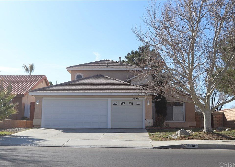Kept Off Market due to "Safer at Home" Quarantine! Turn-Key House in desirable pocket of East Palmdale! One of the best floor plans of Pardee Constructions of 1992, featuring full bathroom and bedroom on the first floor in addition to 2 full bathrooms and 3 bedrooms on the upper level, offering 1,940 square feet of living space with abundance of light and vaulted ceilings. 3-Car Attached Garage with direct access to the house and very private backyard (corner lot) with covered patio/gazebo and dog run. Complete renovation (Owner spent over 55k) includes: "Lemon Sand" Quartz counter tops, professionally re-finished "Linen White" wood cabinets, All new stainless-steel appliances, new Hi-End water resistant "Bel Air - Da Vinci Collection" laminate and "Pearl-Escent" carpet, All new electrical fixtures: LED recessed lights, ceiling fans, outside lights, outlets and switches, All new plumbing fixtures: toilets, faucets and showers. "Touch of Sand" Multi-Color interior paint, All new "Brush-Nickel" accessories. Newer Water Heater and Heater Furnace, Closets, Garage Door, Window treatments, screens and much more. Not a flip, truly loved home! FHA and VA Buyer's Welcome.