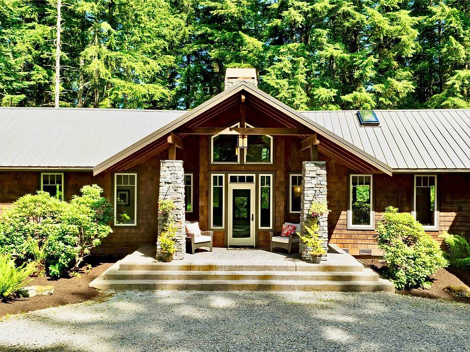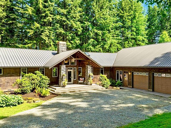Escape to this incredible custom Craftsman woodland retreat, an exquisite lodge-style rambler designed for tranquility, adventure & timeless beauty! Set amidst nature, this finely built home showcases rich hardwoods, slate accents, a striking stone fireplace, soaring wood-lined cathedral ceilings & wrapped windows. The open-concept layout features a serene master suite, private guest suite, elegant library, mudroom & spacious 500 sq ft bdrm/bonus/bunk room. Enjoy year-round comfort w/ radiant heat, solar hot water, central vac & security system. The 1200 SF atrium w/ solar-heated pool, bath & laundry completes this rare sanctuary, just 6 miles from amenities! Deep 2-car garage has ample room for workspace, tools or toys! PRE-INSPECTED!