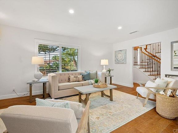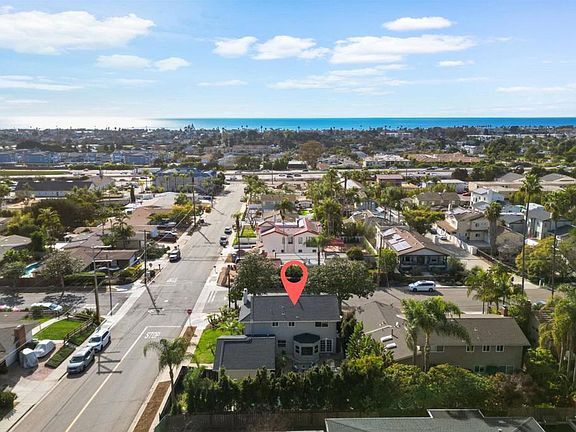 Ocean Views! Sunsets! Tropical outdoor paradise with Pool/Spa & BBQ bar! Welcome to this highly upgraded, custom Olde Carlsbad gem. Located on a quiet, private corner lot, this 5BR, 3BA home offers ocean views and a backyard oasis perfect for entertaining. Inside, discover hardwood floors throughout, elegant light fixtures, shutters, dual-pane vinyl windows, recessed lighting, custom window coverings, and French doors. This traditional floor plan includes a downstairs bedroom and full bath, ideal for guests or multi-generational living. The gourmet kitchen features sleek shaker cabinets, quartz countertops, a stylish backsplash, stainless steel appliances, and a breakfast bar. Upstairs, 3 bedrooms share a balcony with ocean views, while another overlooks the serene backyard. The primary suite offers a dual vanity, luxurious walk-in shower, and a large walk-in closet. Step outside to your private retreat with a spectacular pool, cascading waterfall, spa, and built-in BBQ bar. Whether lounging poolside or dining under the stars, this fully fenced yard invites relaxation. Located just minutes from Carlsbad's award-winning schools, shops, and beautiful beaches, this dream home delivers the ultimate coastal lifestyle.