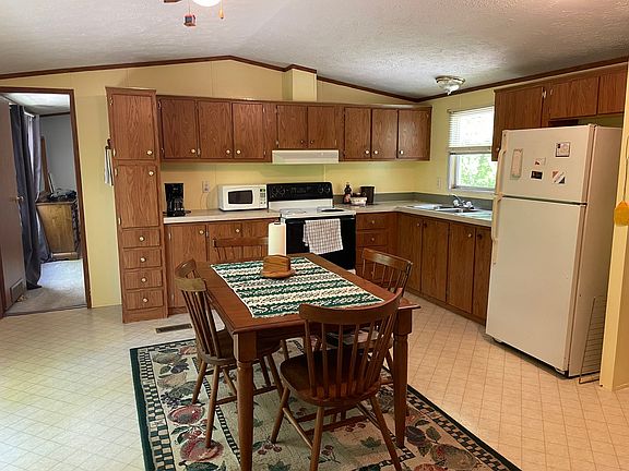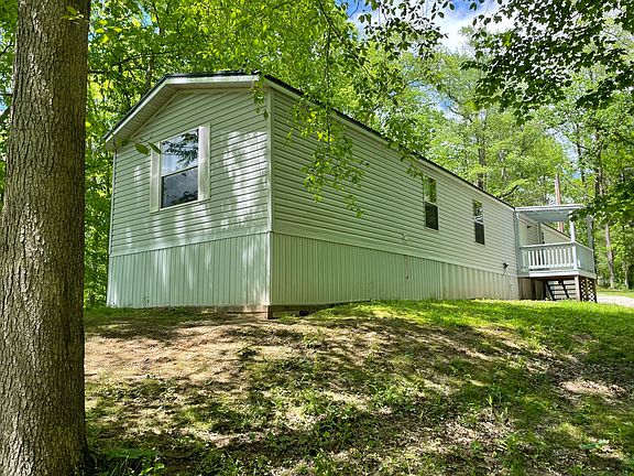 You will love the panoramic views of Mill Creek. This 3 bedroom 2 bath home sits at the end of a private road with 4.43 acres of woods and flowing creek. Freshly painted throughout, new hardwood floors in the living room. Has a front covered porch with huge windows to just sit and enjoy all the wildlife. Nice pole barn and a mini barn for storage. Cash or conventional loan only. Owen County State bank, or manufactured home specialist lender.