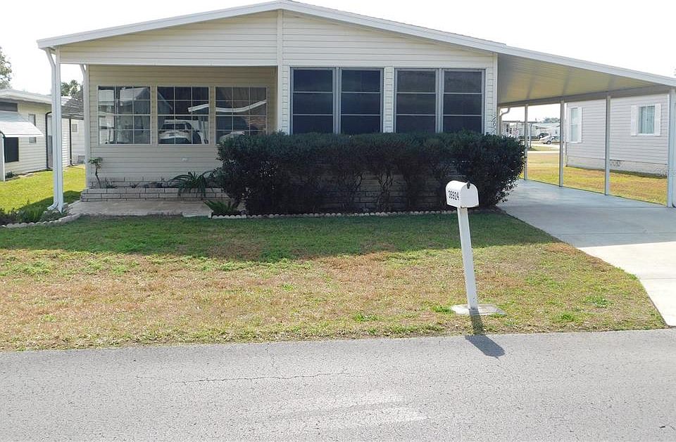 Whether you're looking for a winter get away or a forever home, this double-wide home in Betmar Acres 55+community, where you OWN the land, is the place for you! Great open floor plan which is perfect for casual entertaining or family get togethers. The kitchen has generous cupboard and counter space with a Jennair Cook top and wall oven. The living room has several windows that allows plenty of light to brighten the room. The master bedroom has carpeting, ceiling fan and large walk-in closet. The en suite master bathroom, has laminate flooring, step-in shower, garden tub and storage space. The second bedroom also has carpet, ceiling fan and walk-in closet. The main bathroom has laminate floor, tub/shower combo and vanity. A nice addition to the home is the 18 x 12 carpeted Florida room on the side of the house with many windows to allow all that natural Florida sunshine in and is a great space for additional entertaining. The laundry is located is located off the carport in a 12x11 attached building with concrete floors, washer and dryer and lots of storage space. There is a second Florida room on the front of the home, where you can enjoy your morning coffee. Tara is a dead end street, so there is limited traffic. Don't forget it’s near the 27 holes of golf, 2 swimming pools and hot tubs along with 3 clubhouses a library, walking paths, Game rooms (Billiards, Table Tennis, Board Games) miniature golf, enclosed shuffleboard Courts, Tennis courts, pickle ball courts, basketball court, Bocce courts and Bingo and our NEW dog park. Call for an appointment. NOTE: Per Sellers direction home is not for sale with LLC's.