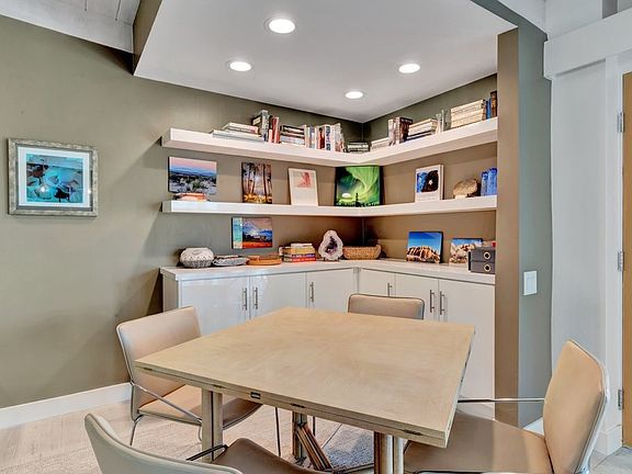 A private back brick patio and lawn provides a serene space for outdoor entertaining or quiet relaxation. Additional highlights include new tile flooring, meticulous maintenance, and a location within a walkable neighborhood of luxury homes, many with mid-century architectural pedigree.