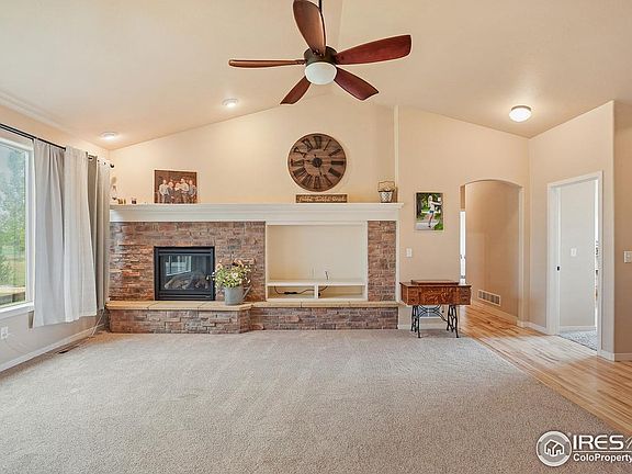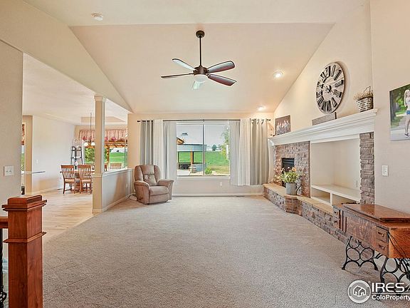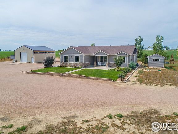 You will not want to miss out on this beautiful semi-custom ranch located just two miles east of Eaton on 4.78 acres! This nicely landscaped yard offers established trees, front and back covered patios, grain bin gazebo, garden shed and amazing mountain views. A pipe fence pasture has a lean-to with three pens set up and ready for your livestock with water and electric access at the fence line. Large 40x40 insulated shop with concrete floors, large overhead door and heater offer all of the storage or work space you could ever need. Inside this completely finished ranch style home you will find new granite counters in the kitchen, amazing wet bar in the basement for entertaining, as well as many other beautiful finishes throughout. Don't miss out of this amazing opportunity to own your own little slice of heaven!