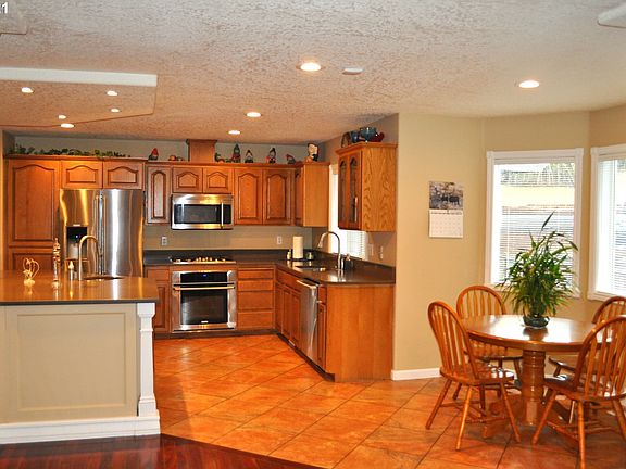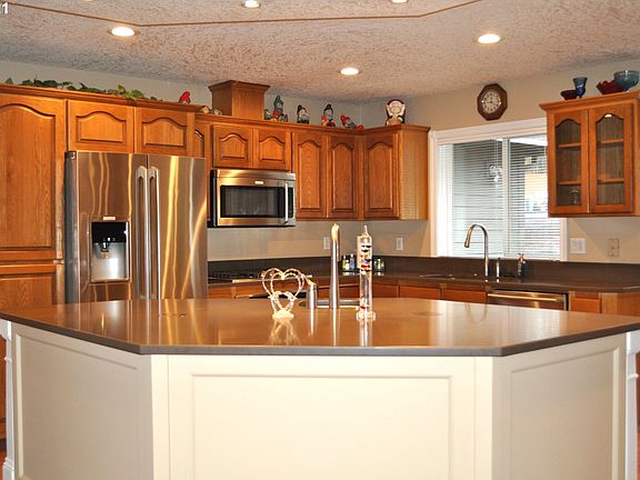 Upscale 1 level home-Cook's kitchen boasts raised panel oak cabinetry, quartz counters, tile floor, Electrolux stainless appliances incl gas range, convection oven & trash compactor-Formal dining plus bayed eating nook w/tile floor-Family room incl gas fireplace & timber frame covered deck access-Generous master bedroom w/walkin closet & dble vanity full bath-Amenities incl Patagonia Rosewood hardwd floors, utility room w/bltin sink & cabinets, 3 flat screen TVs, RV parking & 350 SF paver patio!