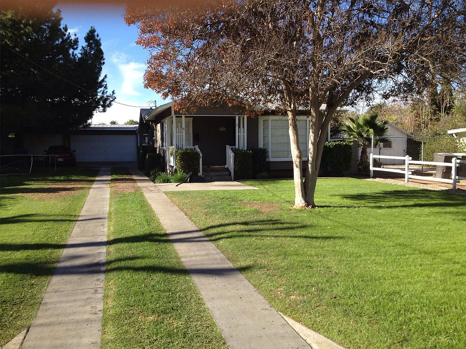 Cute 2 bed 1 bath, nearly 1000 sf with hardwood floors and fireplace. Refrig. included. Washer and dryer hookups. Washer in house but dryer in garage. Sits on a large lot with detached 2 car garage and extra storage area. Centrally located in Riverside. $1150 rent with $1150 security deposit, total move in $2,300. Submit pets for owner approval,backyard is not too big. Non smoking. To qualify you must have income of $2,875 min. and minimum FICO of 545.
