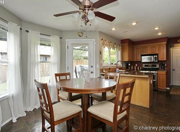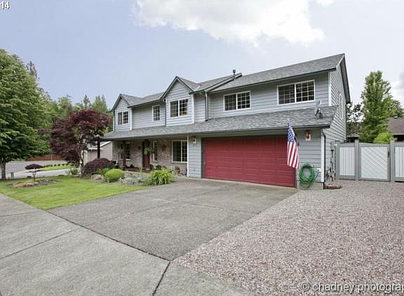 Traditional style home with country front porch welcomes you to Sandy! Over 2600 square feet, large master suite with jetted tub and walk in closets with 2 additional large bedrooms. Office on the main level, could also be used as a 4th bedroom. Great kitchen with granite, stainless appliances, beautiful slate floor, pantry, dining area with access and view of landscaped backyard. Fully fenced yard. Additional parking for RV or boat. Roof is just a few years old. Shed in the back to store garden tools. All across the street from a serene greenspace.
