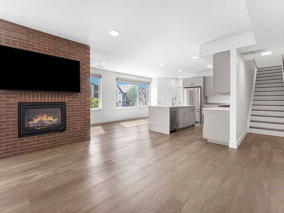 Indoor fireplaceSleek modern floor planMassive rooftopAmple storageThree bedroomsFour bathroomsThree walk-in closets