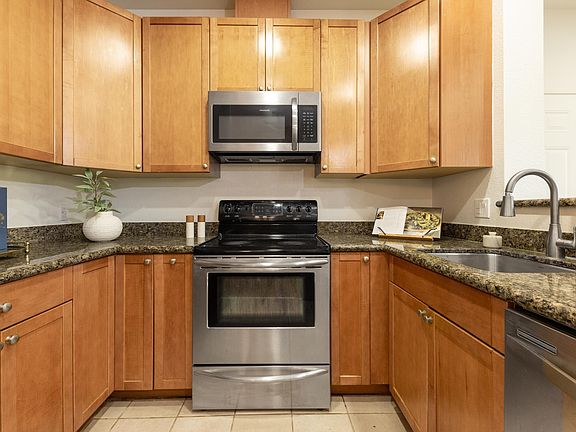 - Features: Stone Counters, Electric Range/Cooktop, Disposal, Microwave, Refrigerator, Self-Cleaning Oven, Updated Kitchen
