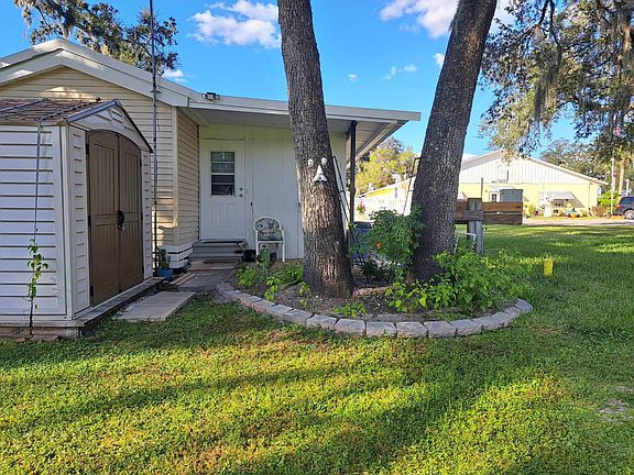 Located in a very active 55+ RV resort with a pool, shuffleboard, horseshoes, and a clubhouse that has entertainment which includes Bingo, karaoke plus a variety of dinners/lunches and so much more. Community is convenient to shopping, restaurants and medical facilities. This lovely home, that has been totally remodeled, is located just across the street from the clubhouse and pool plus there is a beautiful pond with a seating area to enjoy the wonderful Florida weather giving this home a comfortable and homey feel. There is parking for a single car with a brand new paved patio area with the beautiful pond view and trees for nice shady living. A cute covered patio is also attached to the entrance into your new home. As you enter into the Florida room that is surrounded by windows, you are pleasantly surprised by the spacious seating and entertaining area that also holds a half bath and laundry area. The main part of the home has a living and dining area that opens to the kitchen which has a full size gas stove, refrigerator, toaster oven and plenty of cabinets for storage. The main bathroom has a walk in shower and new toilet and vanity. The bedroom has plenty of closet space and drawer space with it's own a/c unit. There is a barn door that leads from the bedroom into the laundry area. All interior has been painted, new flooring and new a/c units. The back yard has a stand alone Rubbermaid shed and an attached shed that has plenty more storage. This home is very comfortable and ready for its new owners to move right in. Call now to schedule an appointment to see for yourself, you won't be disappointed. Lot rent is $450 but please verify with management. CALL NOW!